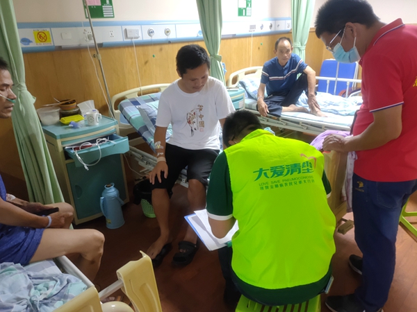2022年10月,志愿者张钰钧、曾志军深入惠安德诚医院探访慰问困难尘肺病患者