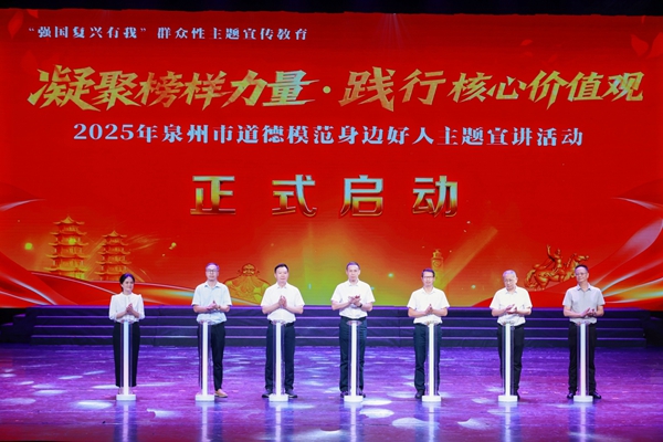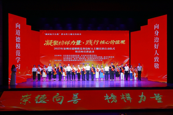 为深入学习贯彻习近平总书记关于公民道德建设的重要论述,进一步培育和践行社会主义核心价值观,着力培育时代新人,9月22日,2025年度泉州市“凝聚榜样力量·践行核心价值观”主题宣讲启动仪式暨首场宣讲活动在泉州市闽南歌舞传承中心举行,通过宣讲的形式,宣扬助人为乐、见义勇为、诚实守信、敬业奉献、孝老爱亲等崇高精神,在全社会形成学习、关爱、崇尚、争当先进典型的浓厚氛围。