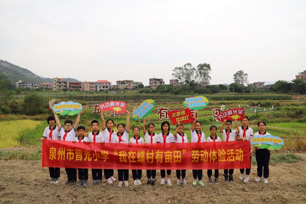 泉州市晋光小学“百校结百村”——“我在蝶村有亩田”劳动体验活动。晋光小学 供图