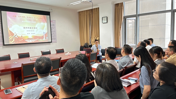为深化平安建设,加强内部安全保卫工作,提高全体干部职工的安全意识和防灾技能,10月31日,泉州市委文明办组织开展消防安全教育讲座。