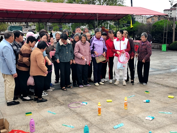 “情暖重阳·圈住幸福” 套圈游戏区充满欢声笑语,志愿者提前准备了洗洁精、食用盐、牙刷等实用小礼品,老人们手持圈环,瞄准目标轻轻一掷,套中礼品时的欢呼声此起彼伏。大家在游戏互动中放松心情,不仅收获了实用奖品,更感受到了节日的欢乐与热闹,让重阳氛围愈发浓厚。