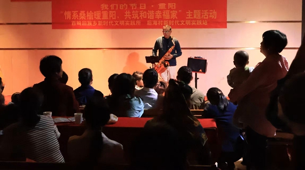 “最美不过夕阳红,温馨又从容……”活动伊始,快乐健身队率先登场,将广场舞与扇子舞巧妙融合,整齐划一的舞步伴着经典旋律,瞬间点燃现场气氛;萨克斯独奏《我爱你中国》《末日格勒河》悠扬响起,演奏者龚先生指尖流淌的旋律温柔动人,引得台下老人们不自觉轻声跟唱;歌曲《醉茫茫》《回乡的我》温情脉脉,演唱者醇厚的嗓音与长辈们的和声交织相融,将邻里间的真挚情谊诠释得淋漓尽致;小朋友们带来的街舞表演活力四射,利落帅气的动作与天真可爱的表情形成萌趣反差,台下掌声与欢呼声此起彼伏;压轴登场的空灵鼓演奏《茉莉花》婉转动听,为整场演出画上圆满句号。