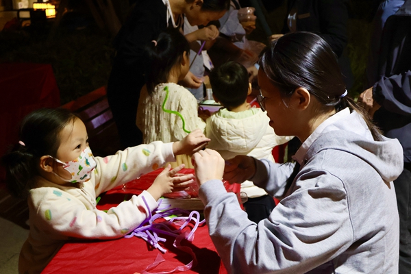 手工体验区里,大人小孩围坐桌前,兴致盎然投入创作。志愿者在旁耐心指导,大家捏着彩色扭扭棒,时而缠绕出圆润的花瓣,时而弯折出纤细的花茎,指尖翻飞间,一朵朵形态鲜活的扭扭花逐渐成型。“我想多做几朵送给爷爷奶奶,祝他们节日快乐!”小朋友们举着亲手制作的作品互相展示,分享创作心得。大家在协作与交流中拉近了邻里距离,更让和谐温暖的社区文化氛围愈发浓厚。
