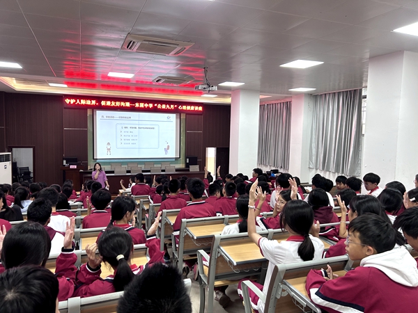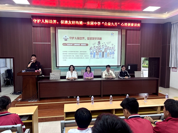 11月3日下午,以“守护人际边界 促进友好沟通”为主题的未成年人心理健康辅导“公益九月”活动在泉州台商投资区东园中学举办,为130余名师生带来一场关于“边界感”与“沟通力”的心灵对话。