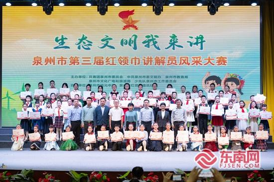 比赛中,选手们仪态大方、声情并茂,通过现场演讲和PPT展示,用小视角、小故事生动讲解生态文明建设的大理念、大情怀,充分展现泉州新时代少先队员朝气蓬勃、践行环保的良好风采。经专家评审,最终评选出特等奖3名、一等奖10名、二等奖19名、三等奖33名,获得特等和一、二等奖的选手同时被聘为“泉州市红领巾讲解员”。