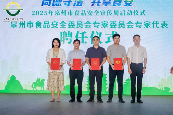 活动现场举行了泉州市食品安全专家委员会专家聘任仪式,新一届的市食品安全专家委员会由来自全市种植养殖、生产加工、检验检测、污染防控等各个领域的86位食品安全专家组成,将为我市食品安全监管问题研究、事故调查、风险防控等提供智力支持。