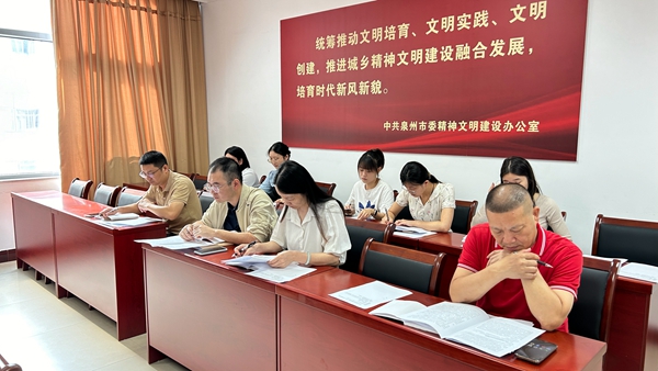 会议要求,要深入学习领会,把握精神实质。全体党员干部要提高政治站位,精心组织系统学习,周密部署安排,将学习贯彻全会精神作为理论武装的重中之重,纳入理论学习中心组学习、干部学习教育、支部“三会一课”和主题党日活动的重要内容,要坚持领导干部带头,班子成员和各科室负责人要先学一步、学深一层,原原本本、逐字逐句研读习近平总书记在全会上的重要讲话和全会通过的《建议》,深入系统学习,深刻领会精神实质,精准把握核心要义。要全面部署推进,掀起学贯热潮。广泛开展宣传宣讲,营造浓厚氛围,结合全国文明城市创建开展公益宣传,推送一批学习宣传贯彻四中全会精神的公益广告、宣传海报等宣传载体;依托文明实践中心(所、站)开展宣讲,采取群众喜闻乐见的形式,推动全会精神走入千家万户;线上线下结合实现宣传全覆盖,加强宣传报道,充分发挥好泉州文明网及其新媒体平台宣传辐射作用,及时宣传报道全市精神文明建设战线学习宣传贯彻全会精神的工作情况、实际成效和好经验好做法;加强正面引导,注重发现和挖掘先进典型,用身边事教育身边人,结合宣讲员培训引导先进典型带头学习全会精神,营造良好的学习宣传氛围。要强化组织领导,确保取得实效。充分认识学习宣传贯彻党的二十届四中全会精神的重大意义,切实履行主体责任,结合实际制定学习计划,作出具体安排,确保组织到位、措施到位、落实到位;严明政治纪律、宣传纪律,建好管好用好宣传阵地,严格落实意识形态工作责任制。加强理论舆论、文化文明、网上网下等工作,推进系统协作、宣传联动,实现同步同向、同频共振。把学习宣传贯彻全会精神与精神文明建设工作紧密结合起来,抓住关键、突破难点、创新工作,确保党的二十届四中全会精神落地见效,推动全市精神文明建设高质量发展。