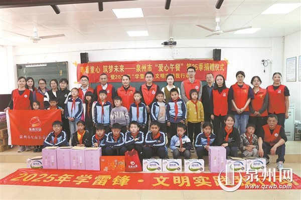 3月3日上午,2025年“学雷锋·文明实践我行动”主题活动之“春暖童心 筑梦未来”——泉州市“爱心午餐”第25季捐赠仪式在安溪县祥华中心学校隆重举行。当天,由主办、承办单位的党员干部和志愿者组成的爱心团队,向20名困难学生及留守儿童发放了“爱心午餐”助学金和慰问物资,并向学校捐赠了一批体育用品,为孩子们送上新学期的美好祝愿。